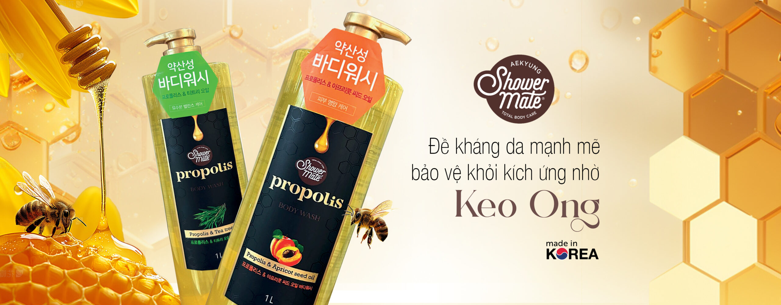 Sản phẩm: Sữa tắm cao cấp Hàn Quốc Showermate Honeyrop Propolis Apricot Seed Oil